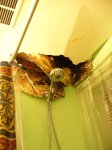 Guy hears a loud crash in his bathroom. He assumes the ceiling had caved in. Upon further inspection he notices that the large pile of dirt is actually millions of brown ants and that the light brown speckles are actually eggs.