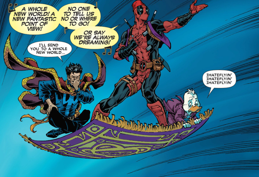 peter and wade are fighting side by side and when peter runs out of web fluid, he grabs a gun off wade’s belt and wade has this transcendent moment of i’m going to watch spiderman shoot my gun at a real live bad guy